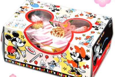 ミッキーとミニーの専用ボックスに入った少し小さめのスクエアケーキになります。
